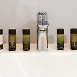 There are conveniences, like an ironing set and climate control, along with a TV. The interior elements include a sofa set and a work desk, as well as sound-proofed windows. Featuring a bidet, a separate toilet, and a shower, the bathroom also comes with hairdryers and towels.